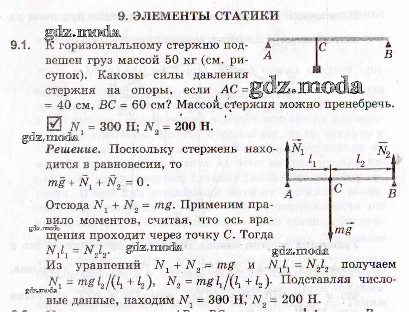 ОТВЕТ на задание № 9.1 Задачник по Физике 10-11 класс Гельфгат Профильный уровень