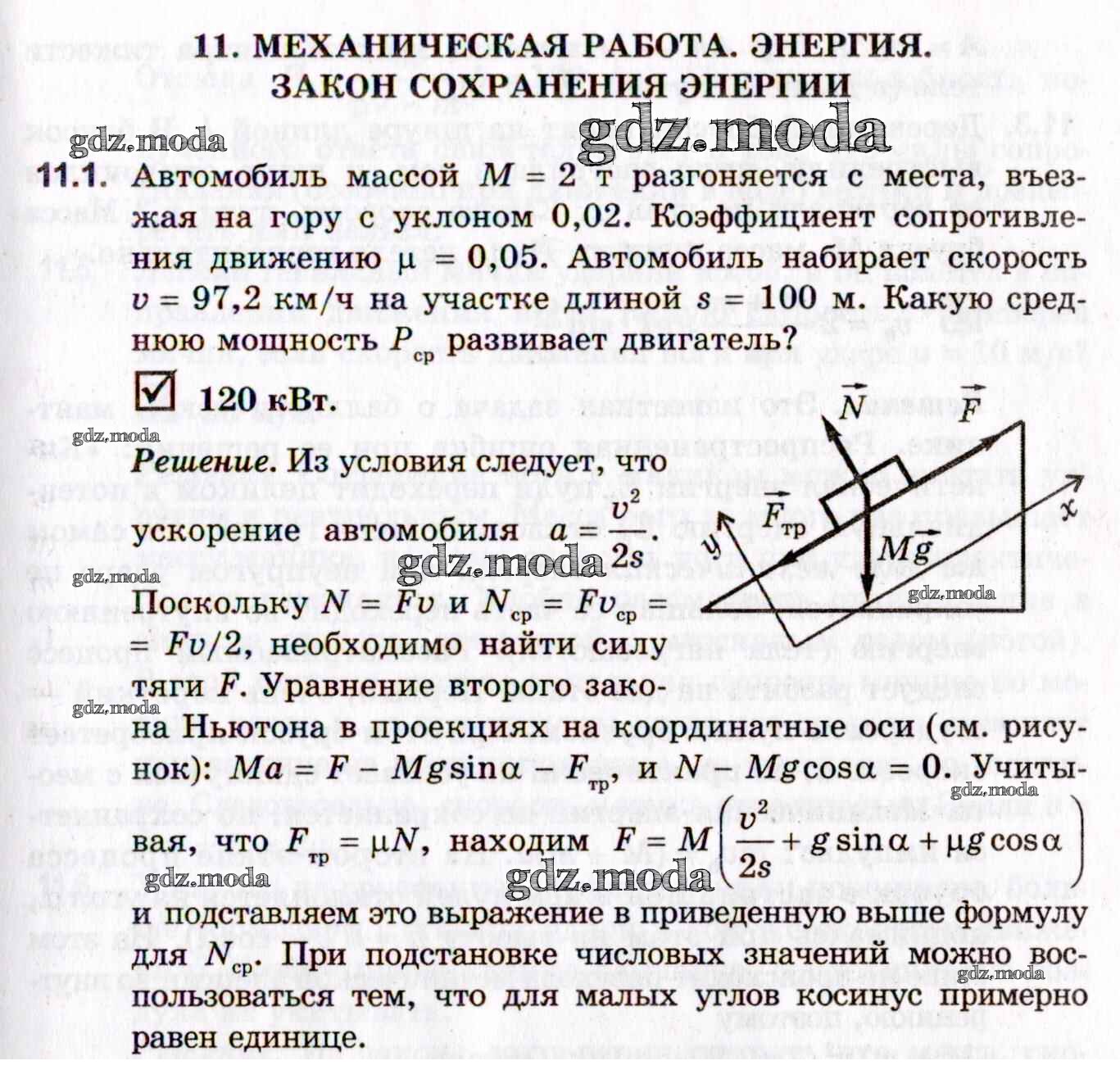 ОТВЕТ на задание № 11.1 Задачник по Физике 10-11 класс Гельфгат Профильный уровень