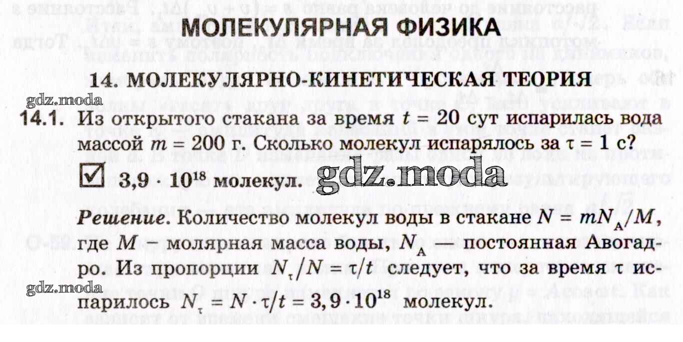 ОТВЕТ на задание № 14.1 Задачник по Физике 10-11 класс Гельфгат Профильный уровень