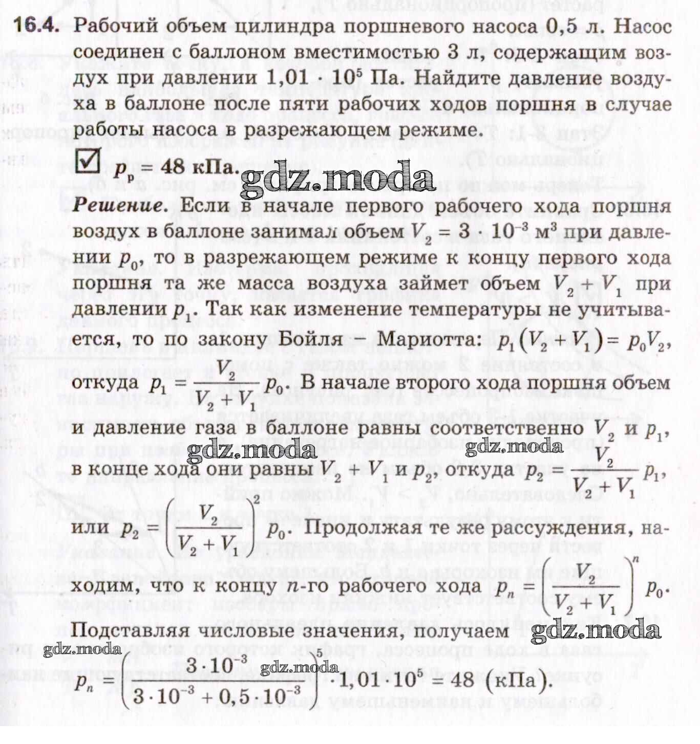 ОТВЕТ на задание № 16.4 Задачник по Физике 10-11 класс Гельфгат Профильный уровень