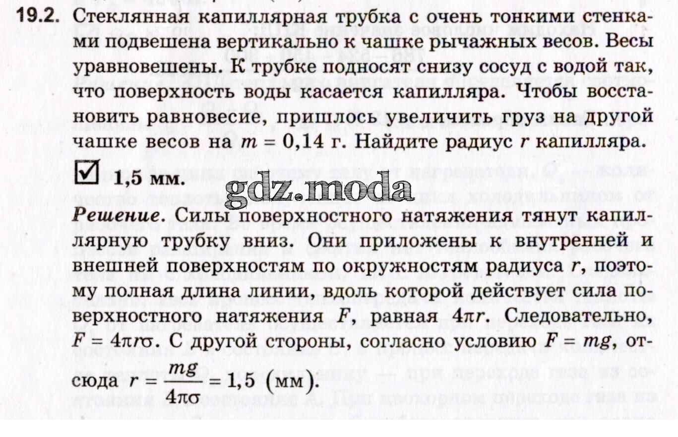 ОТВЕТ на задание № 19.2 Задачник по Физике 10-11 класс Гельфгат Профильный уровень
