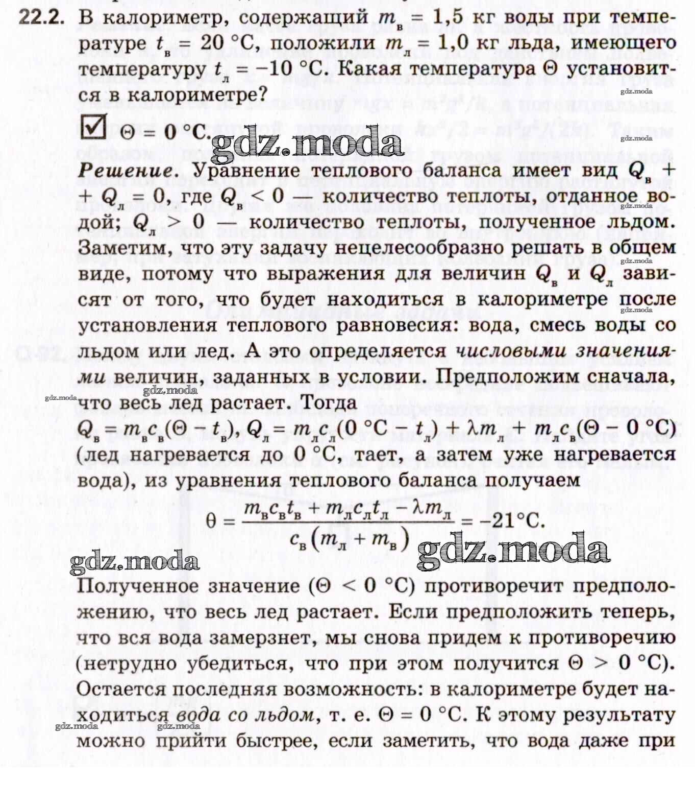 ОТВЕТ на задание № 22.2 Задачник по Физике 10-11 класс Гельфгат Профильный уровень