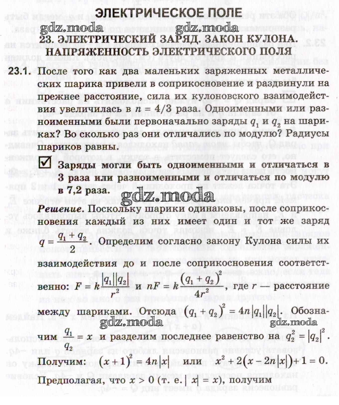 ОТВЕТ на задание № 23.1 Задачник по Физике 10-11 класс Гельфгат Профильный уровень