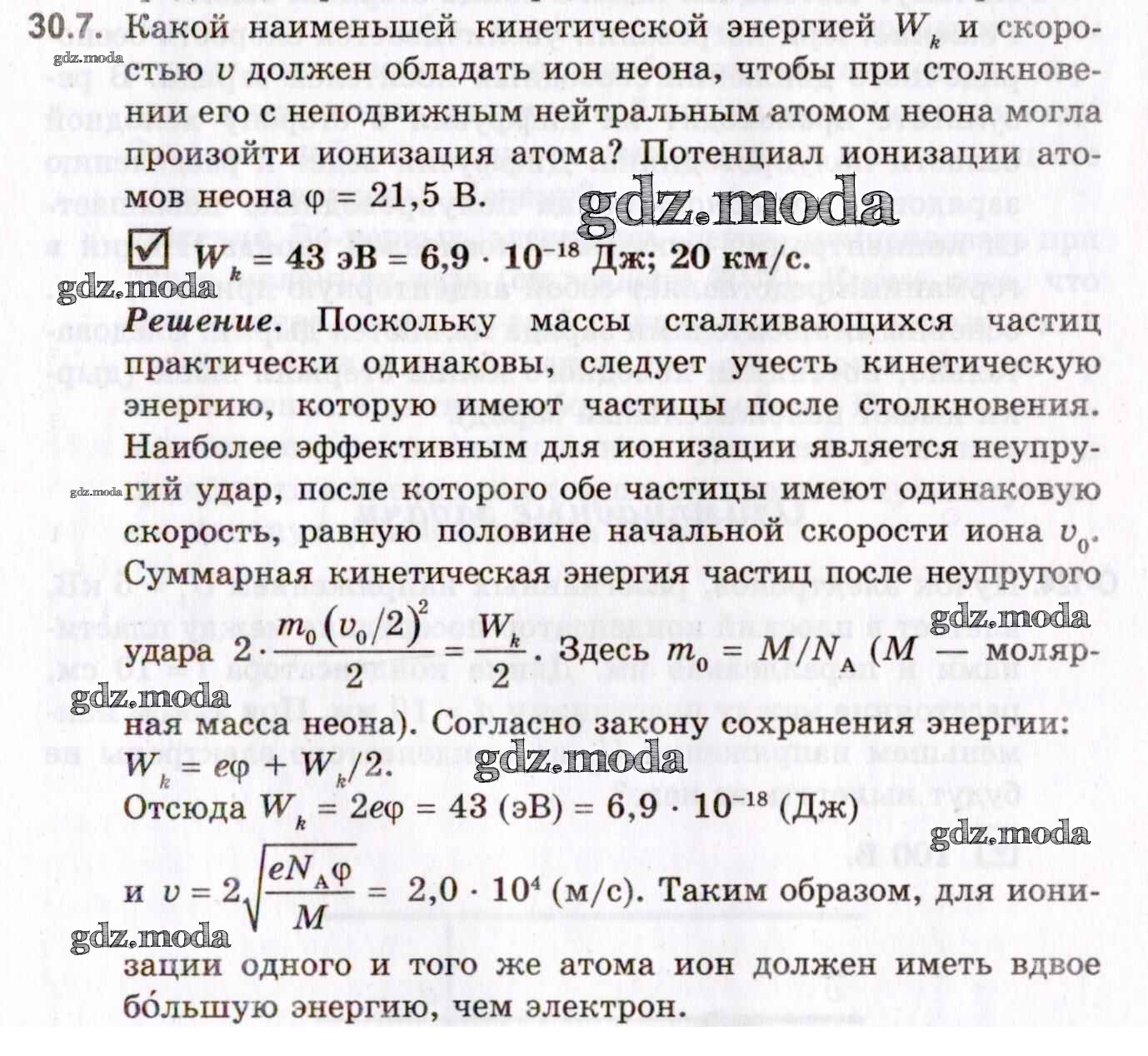 ОТВЕТ на задание № 30.7 Задачник по Физике 10-11 класс Гельфгат Профильный уровень