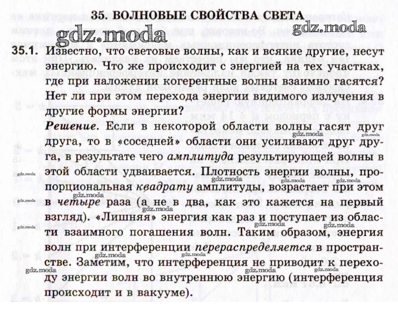 ОТВЕТ на задание № 35.1 Задачник по Физике 10-11 класс Гельфгат Профильный уровень