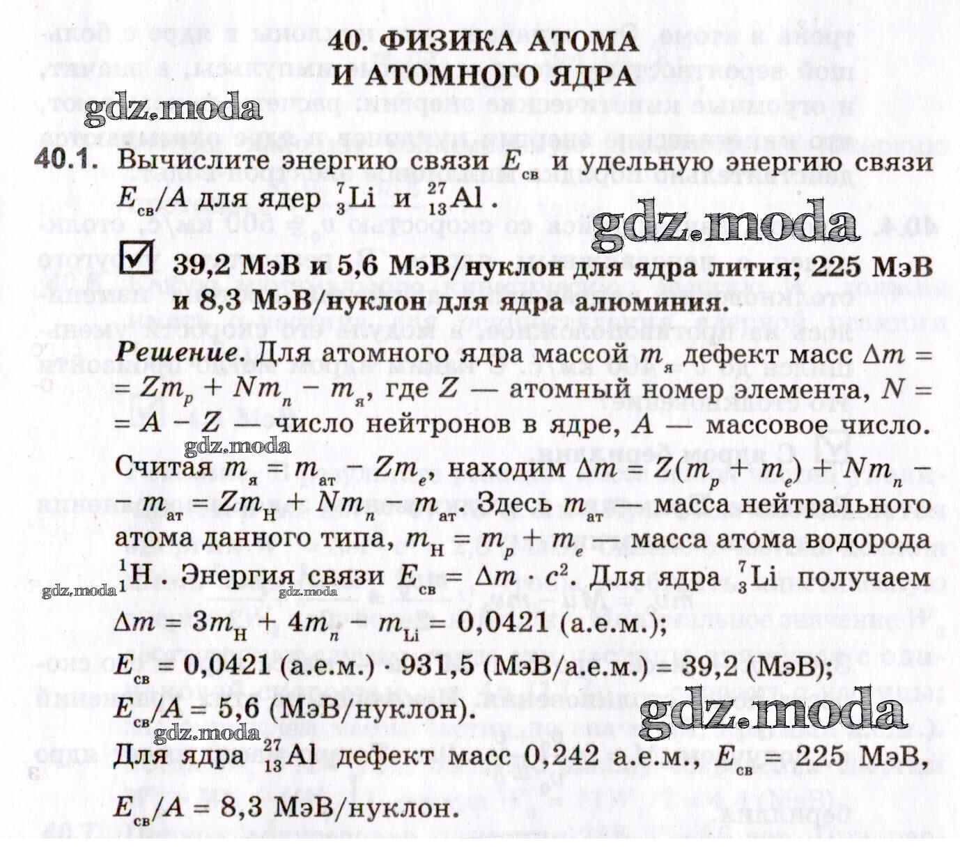 ОТВЕТ на задание № 40.1 Задачник по Физике 10-11 класс Гельфгат Профильный уровень