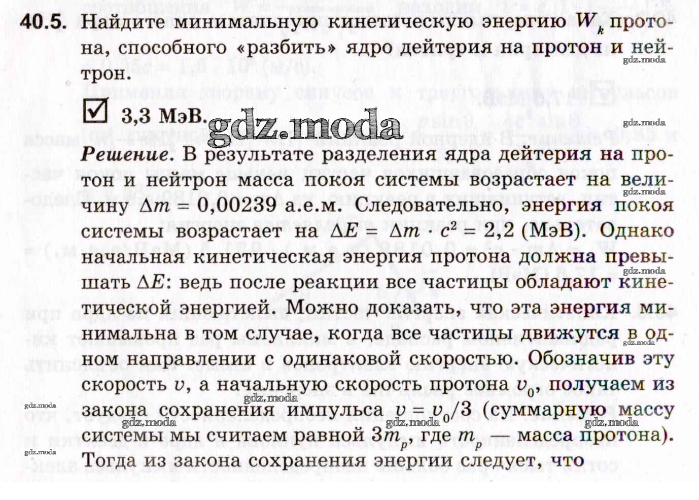 ОТВЕТ на задание № 40.5 Задачник по Физике 10-11 класс Гельфгат Профильный уровень