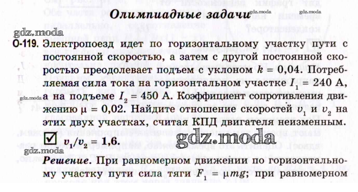 ГДЗ решение к заданию № О-119 Ключевые задачи по физике 10-11 классы Гельфгат И.М. Илекса 2021 Профильный уровень бесплатно на гдз.мода!