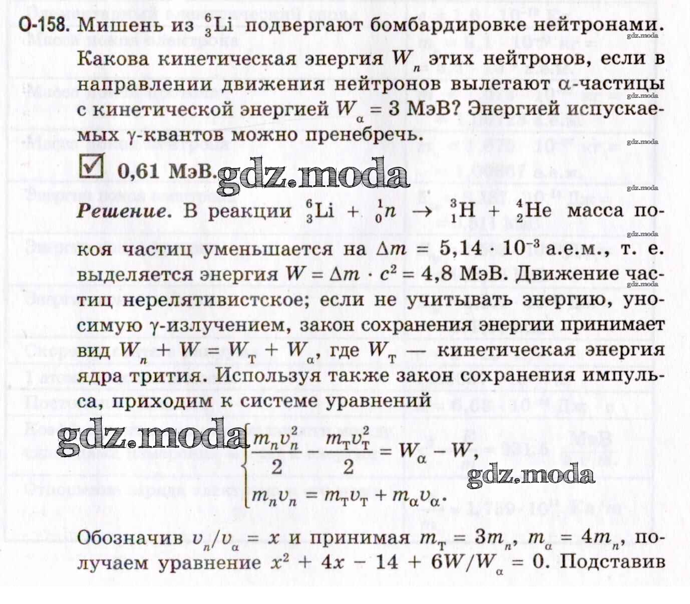 ОТВЕТ на задание № О-158 Задачник по Физике 10-11 класс Гельфгат Профильный уровень