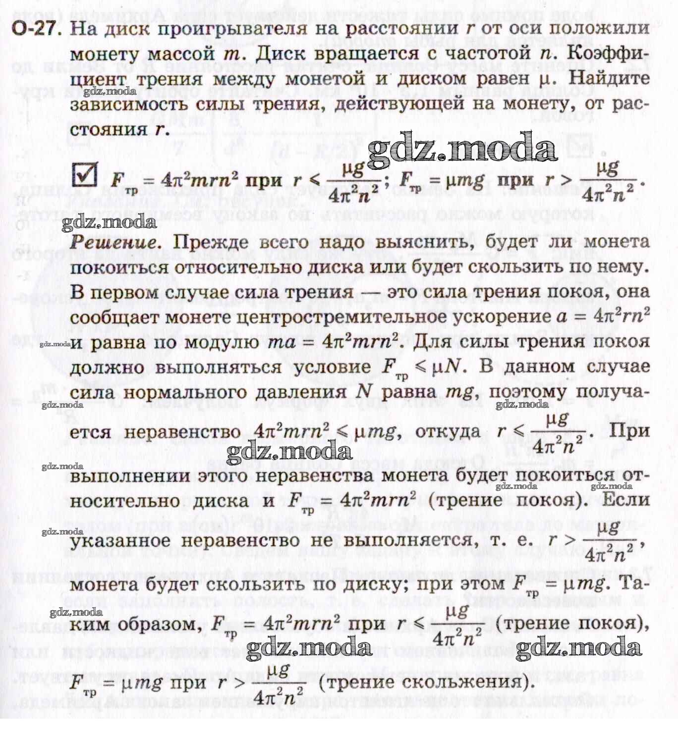 ГДЗ решение к заданию № О-27 Ключевые задачи по физике 10-11 классы Гельфгат И.М. Илекса 2021 Профильный уровень бесплатно на гдз.мода!