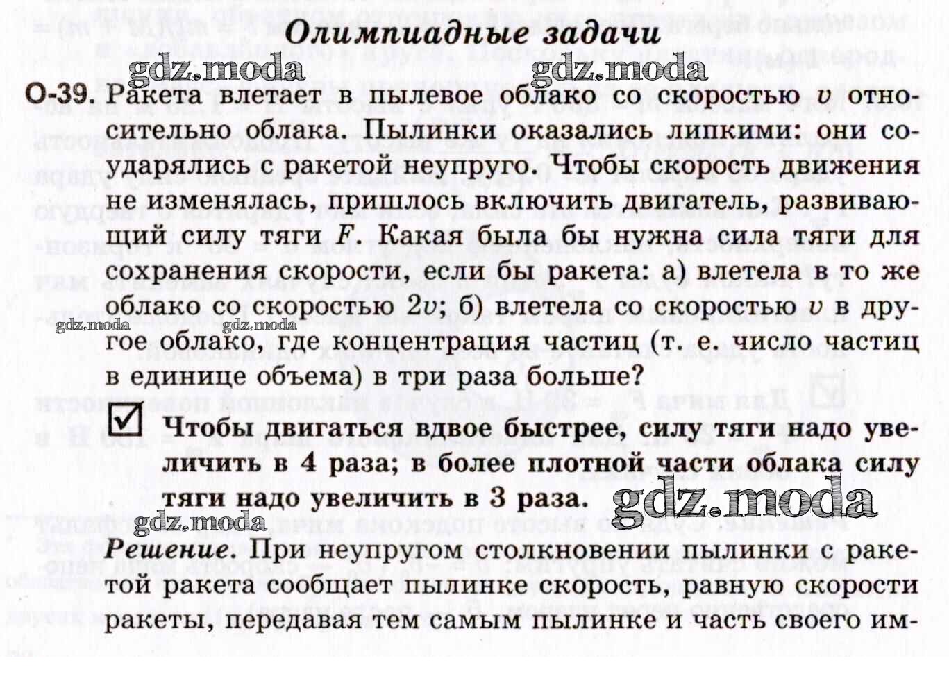 ГДЗ решение к заданию № О-39 Ключевые задачи по физике 10-11 классы Гельфгат И.М. Илекса 2021 Профильный уровень бесплатно на гдз.мода!