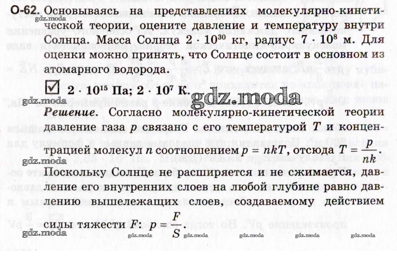 ГДЗ решение к заданию № О-62 Ключевые задачи по физике 10-11 классы Гельфгат И.М. Илекса 2021 Профильный уровень бесплатно на гдз.мода!