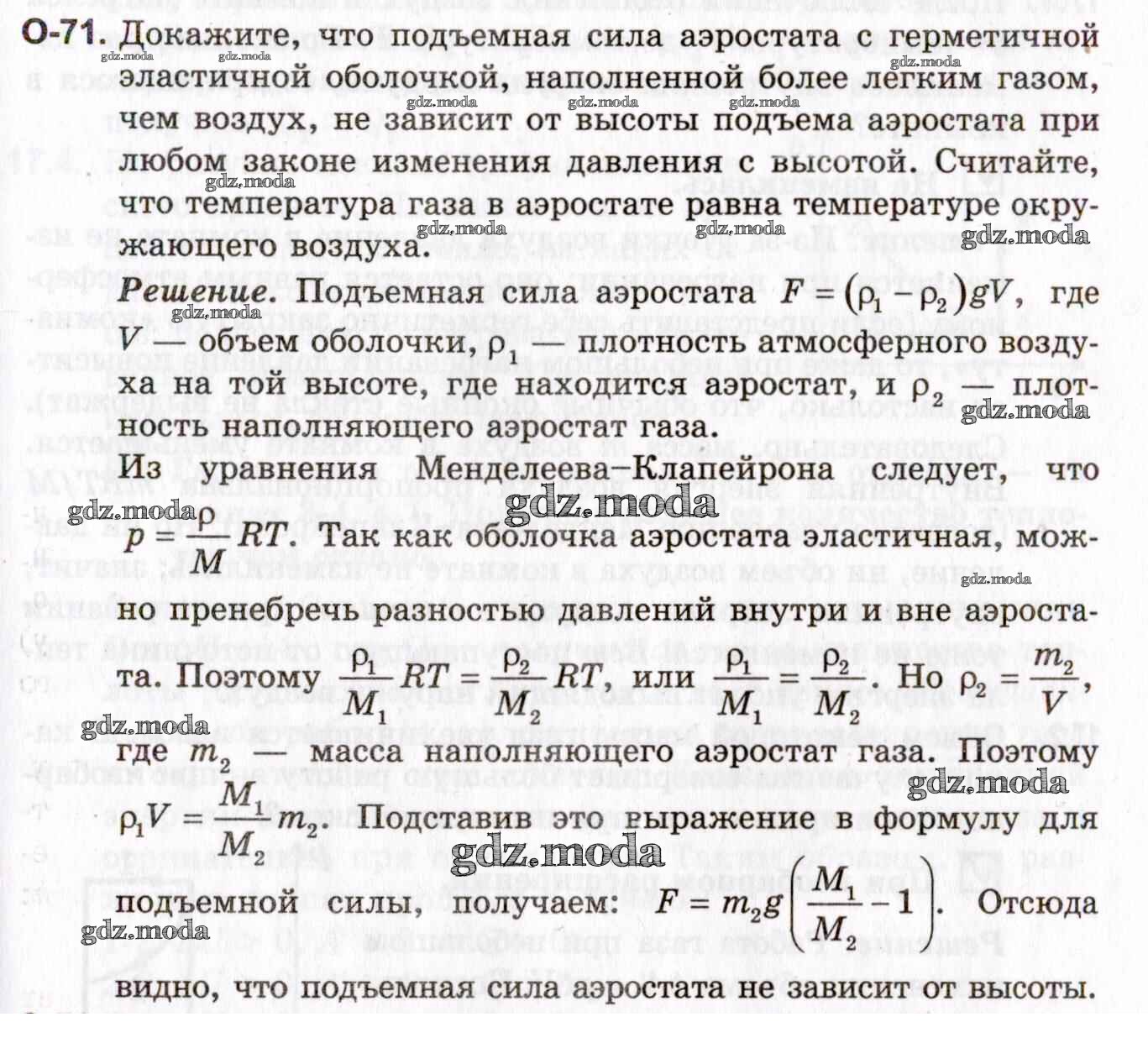 ГДЗ решение к заданию № О-71 Ключевые задачи по физике 10-11 классы Гельфгат И.М. Илекса 2021 Профильный уровень бесплатно на гдз.мода!