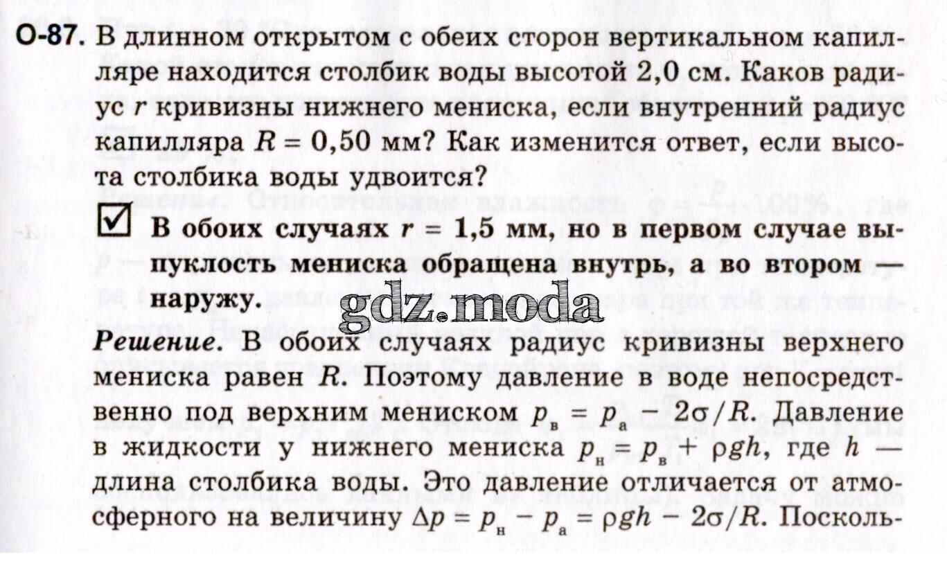 ГДЗ решение к заданию № О-87 Ключевые задачи по физике 10-11 классы Гельфгат И.М. Илекса 2021 Профильный уровень бесплатно на гдз.мода!