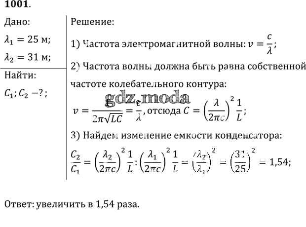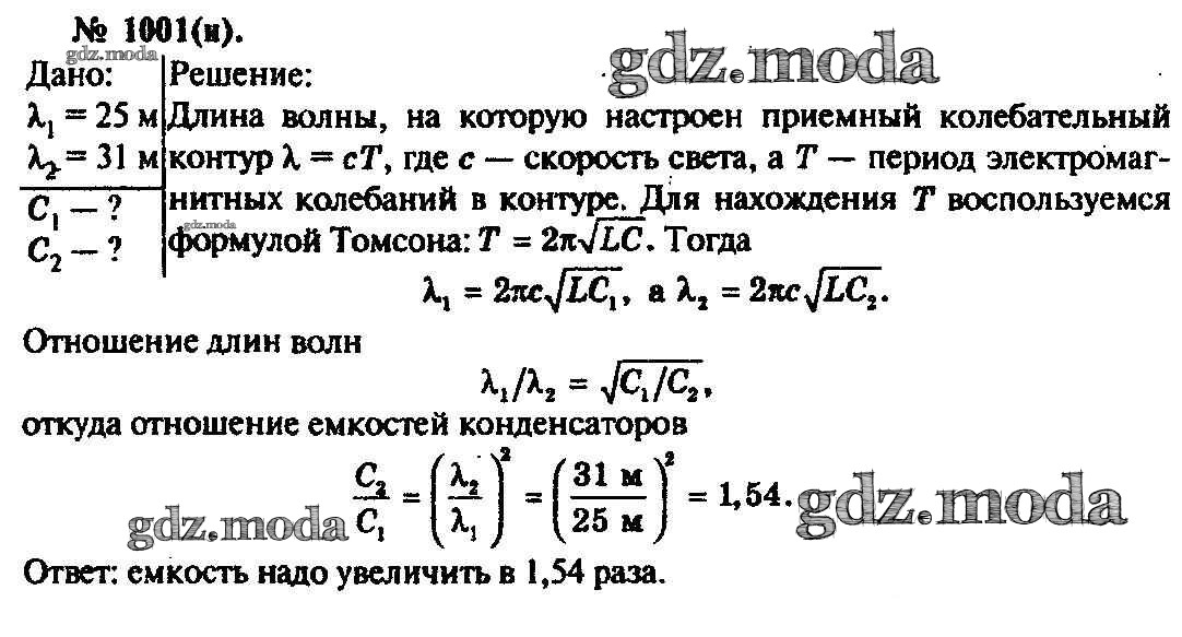 ОТВЕТ на задание № 1001 Задачник по Физике 10-11 класс Рымкевич УМК