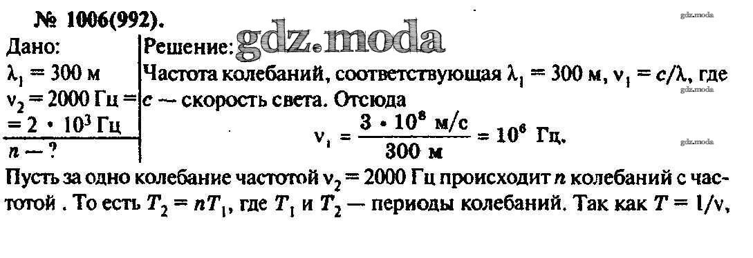 ОТВЕТ на задание № 1006 Задачник по Физике 10-11 класс Рымкевич УМК