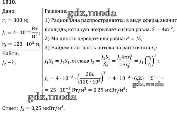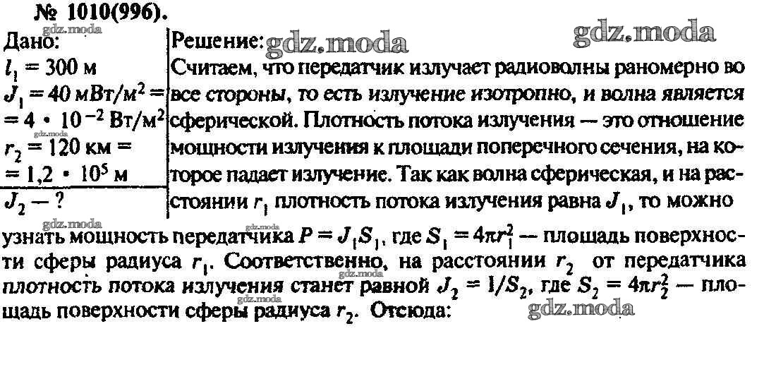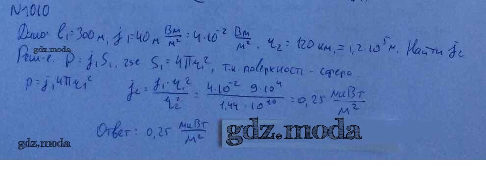 ОТВЕТ на задание № 1010 Задачник по Физике 10-11 класс Рымкевич УМК