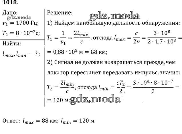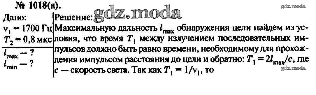 ОТВЕТ на задание № 1018 Задачник по Физике 10-11 класс Рымкевич УМК