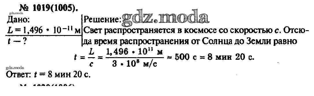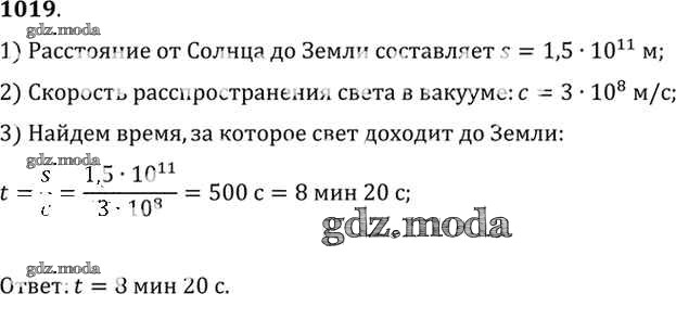 ОТВЕТ на задание № 1019 Задачник по Физике 10-11 класс Рымкевич УМК