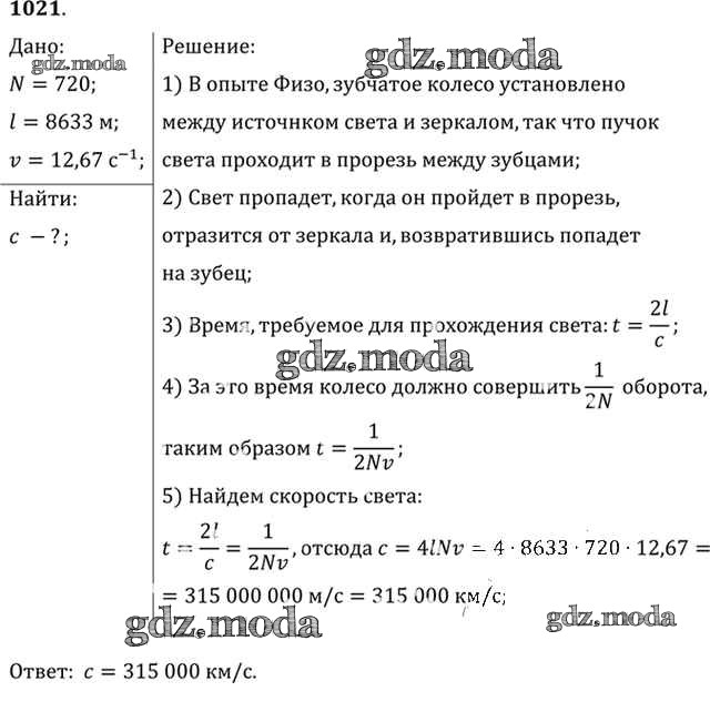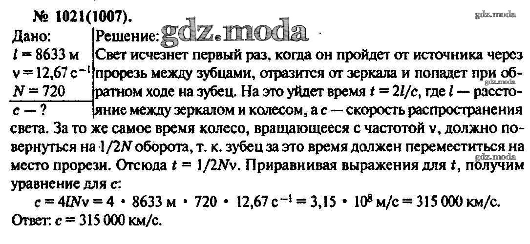 ОТВЕТ на задание № 1021 Задачник по Физике 10-11 класс Рымкевич УМК