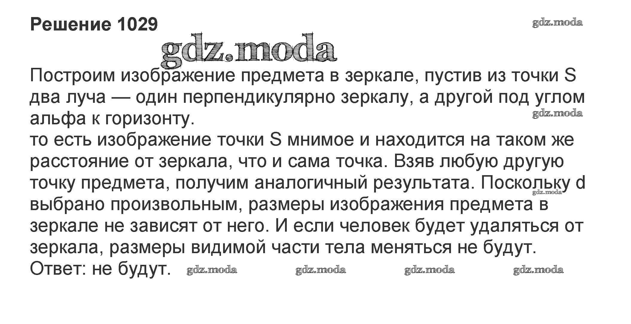 ОТВЕТ на задание № 1029 Задачник по Физике 10-11 класс Рымкевич УМК