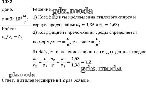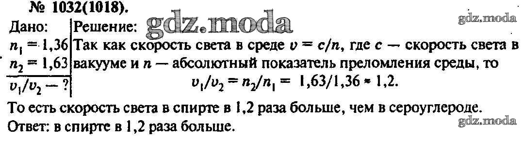 ОТВЕТ на задание № 1032 Задачник по Физике 10-11 класс Рымкевич УМК