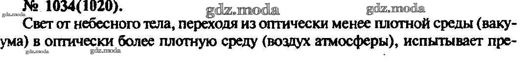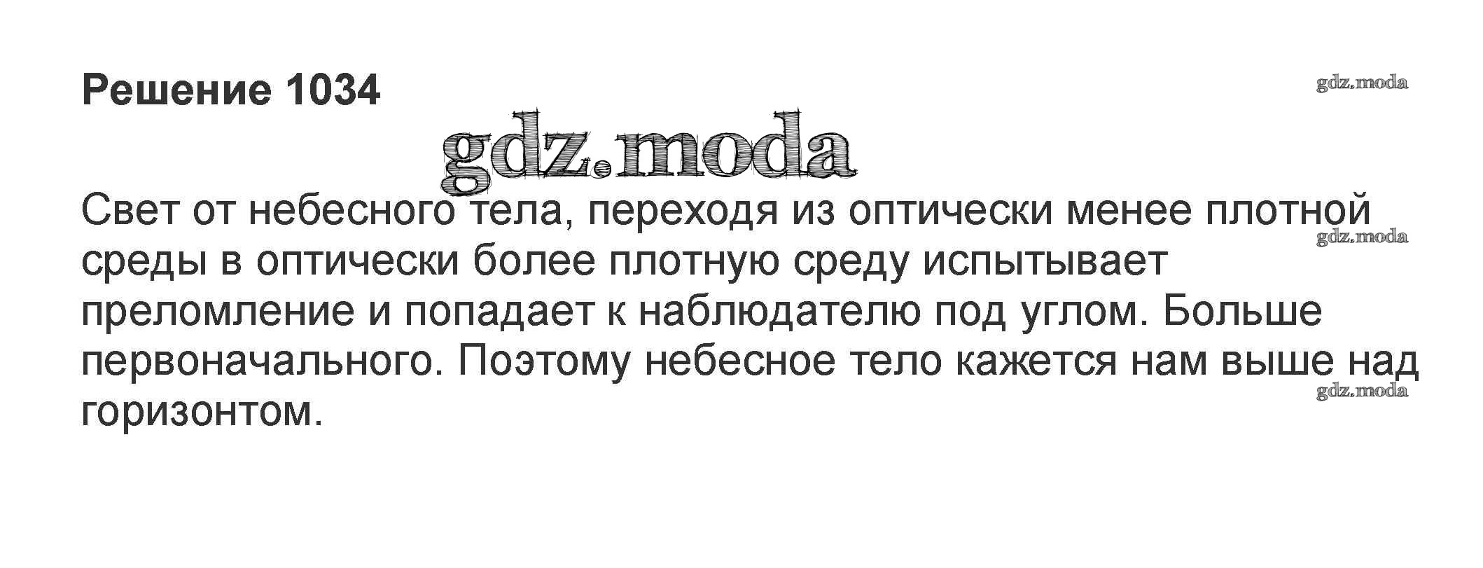 ОТВЕТ на задание № 1034 Задачник по Физике 10-11 класс Рымкевич УМК