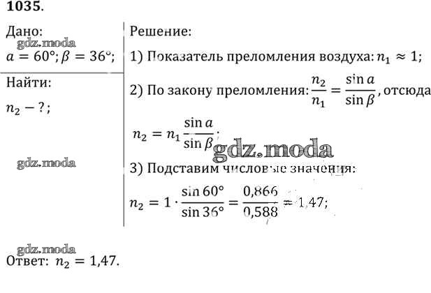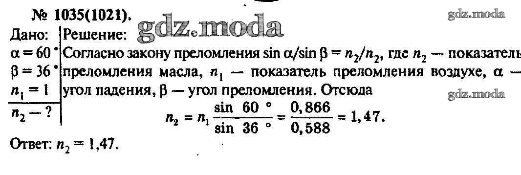 ОТВЕТ на задание № 1035 Задачник по Физике 10-11 класс Рымкевич УМК
