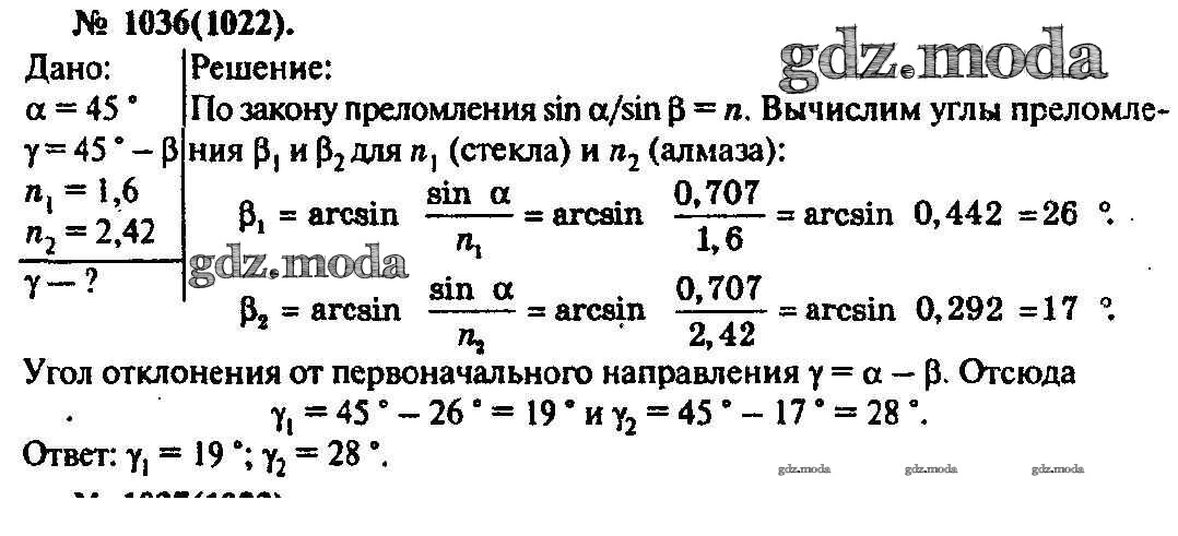 ОТВЕТ на задание № 1036 Задачник по Физике 10-11 класс Рымкевич УМК
