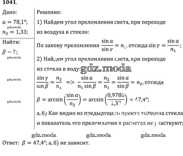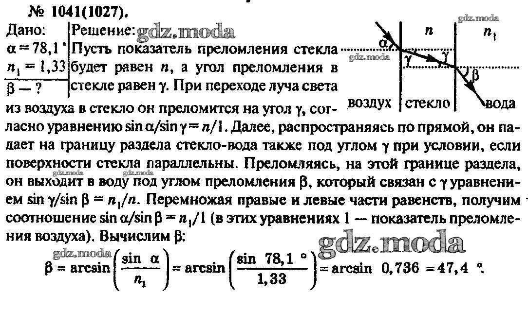 ОТВЕТ на задание № 1041 Задачник по Физике 10-11 класс Рымкевич УМК