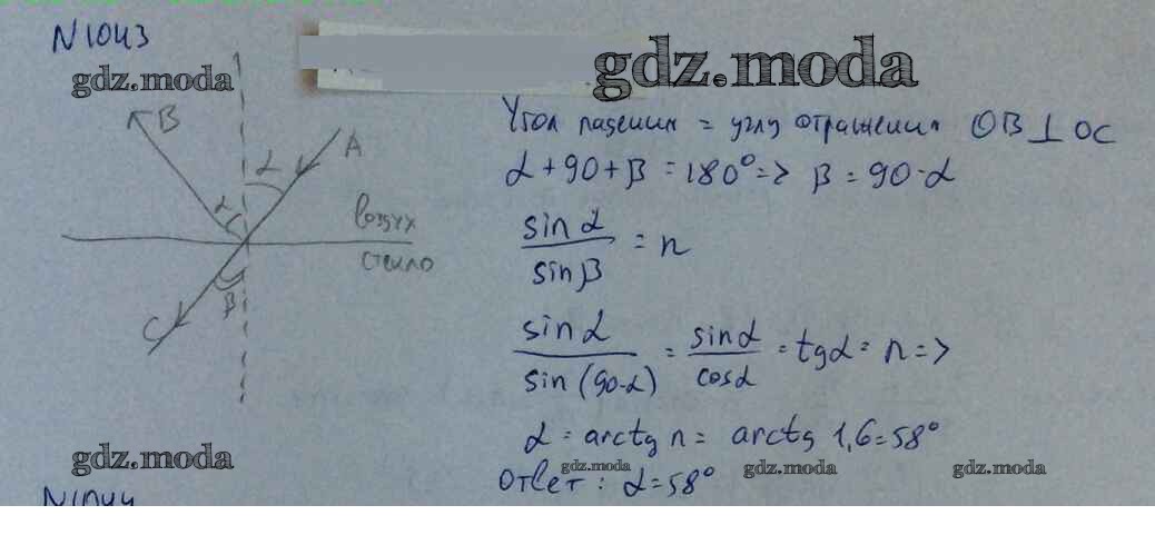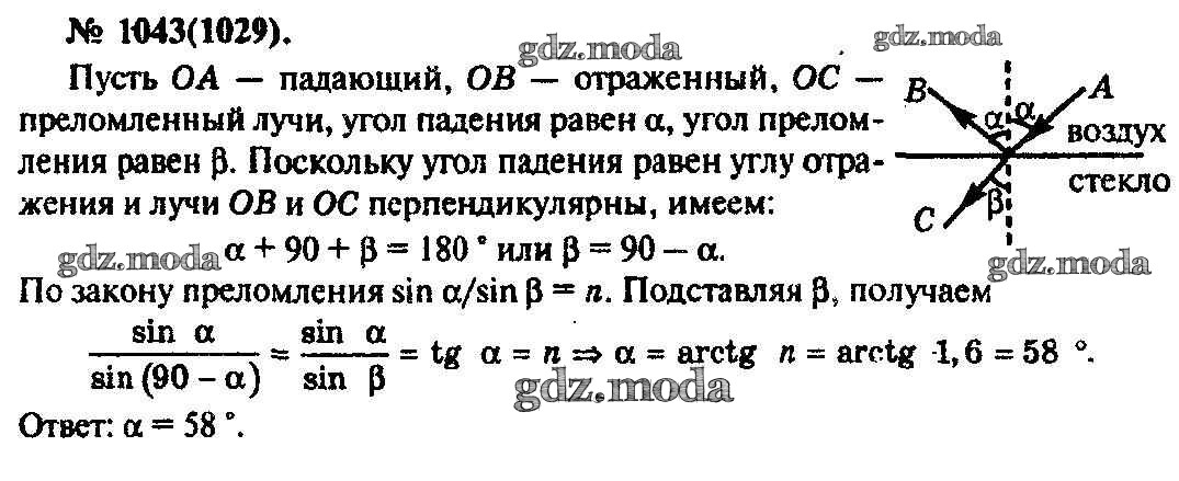 ОТВЕТ на задание № 1043 Задачник по Физике 10-11 класс Рымкевич УМК
