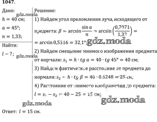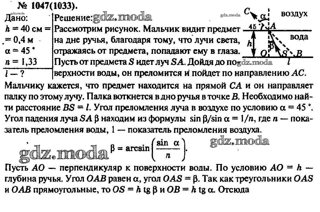 ОТВЕТ на задание № 1047 Задачник по Физике 10-11 класс Рымкевич УМК