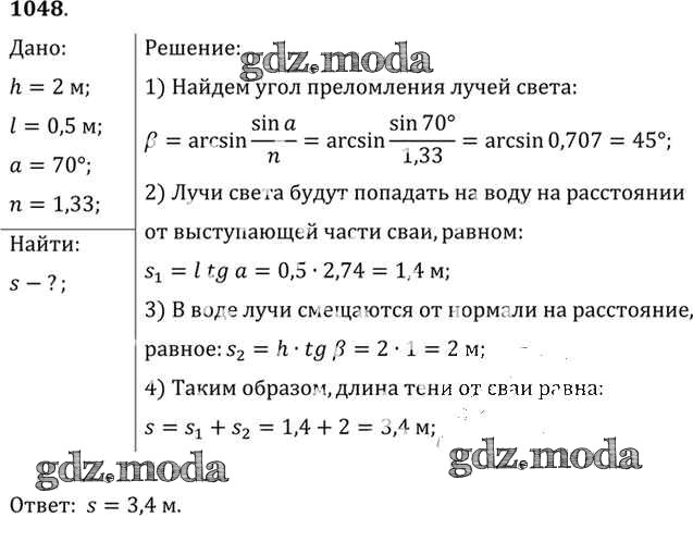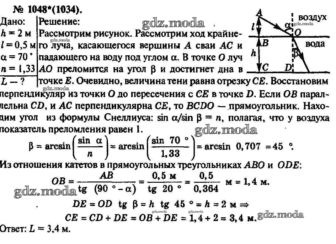 ОТВЕТ на задание № 1048 Задачник по Физике 10-11 класс Рымкевич УМК
