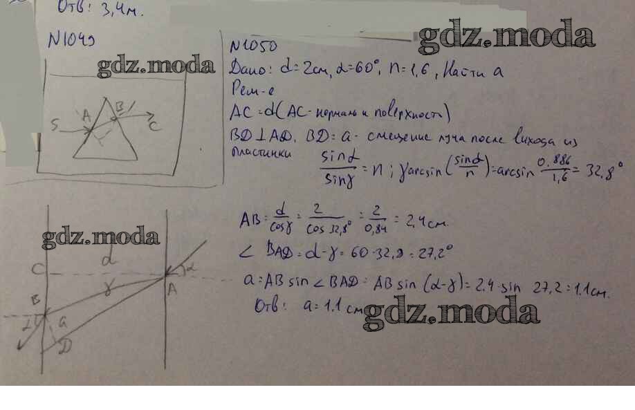 ОТВЕТ на задание № 1050 Задачник по Физике 10-11 класс Рымкевич УМК