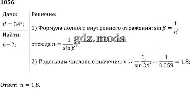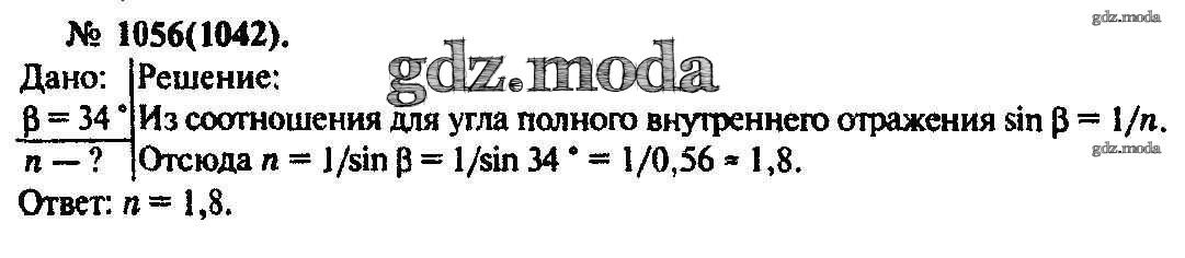 ОТВЕТ на задание № 1056 Задачник по Физике 10-11 класс Рымкевич УМК
