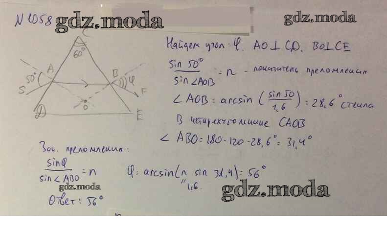 ОТВЕТ на задание № 1058 Задачник по Физике 10-11 класс Рымкевич УМК