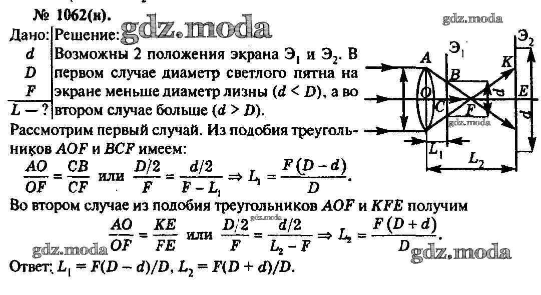 ОТВЕТ на задание № 1062 Задачник по Физике 10-11 класс Рымкевич УМК