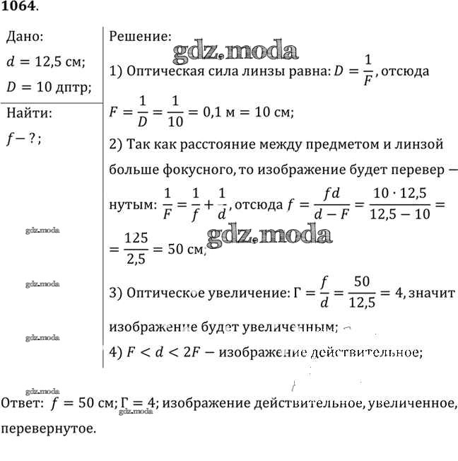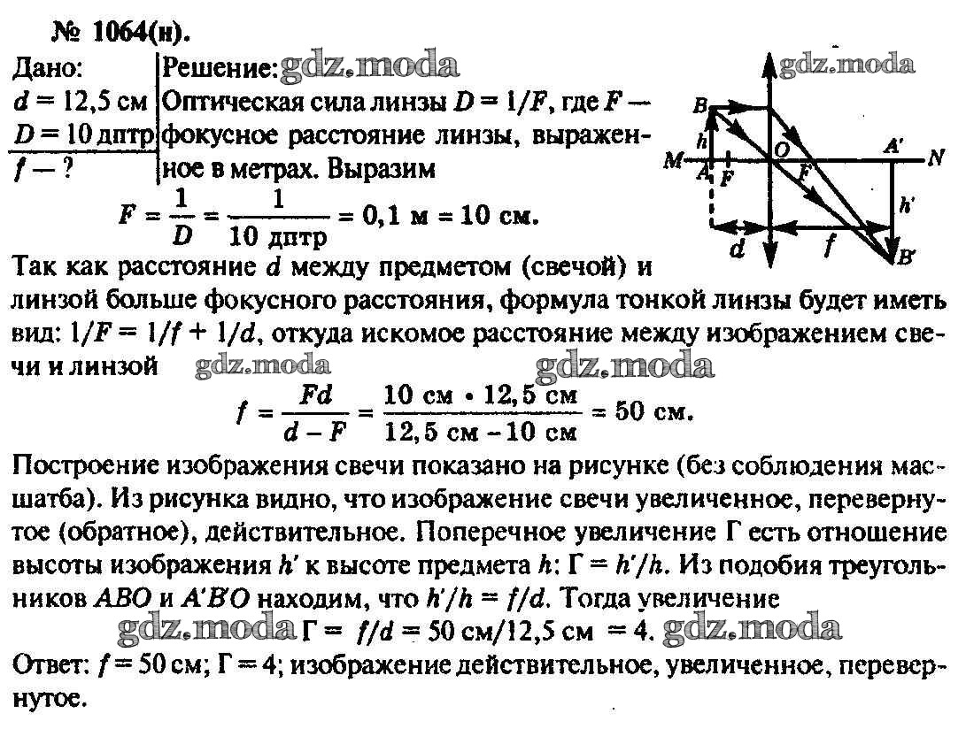 ОТВЕТ на задание № 1064 Задачник по Физике 10-11 класс Рымкевич УМК