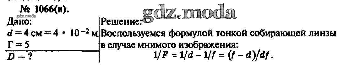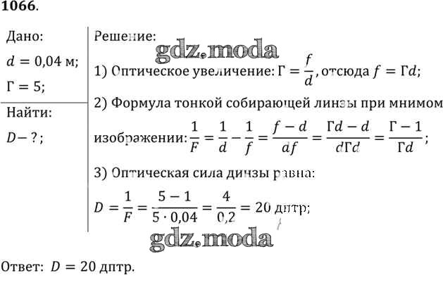 ОТВЕТ на задание № 1066 Задачник по Физике 10-11 класс Рымкевич УМК