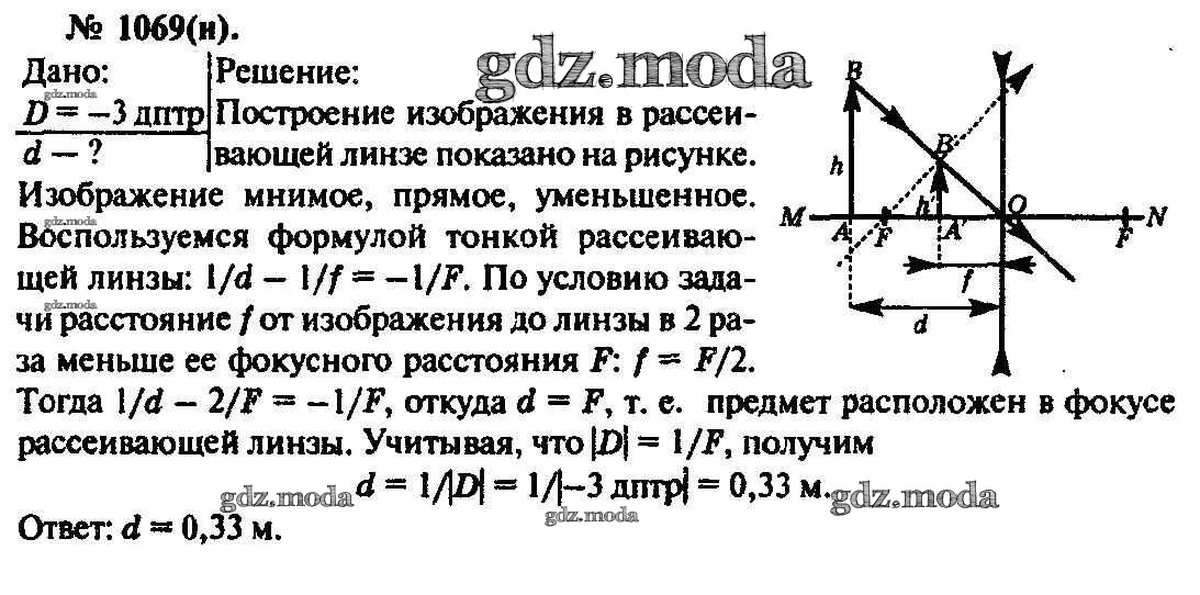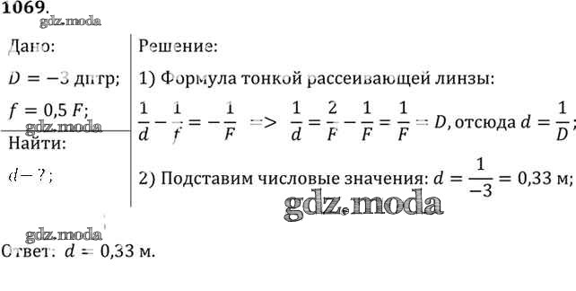 ОТВЕТ на задание № 1069 Задачник по Физике 10-11 класс Рымкевич УМК
