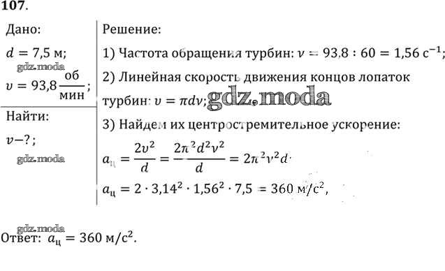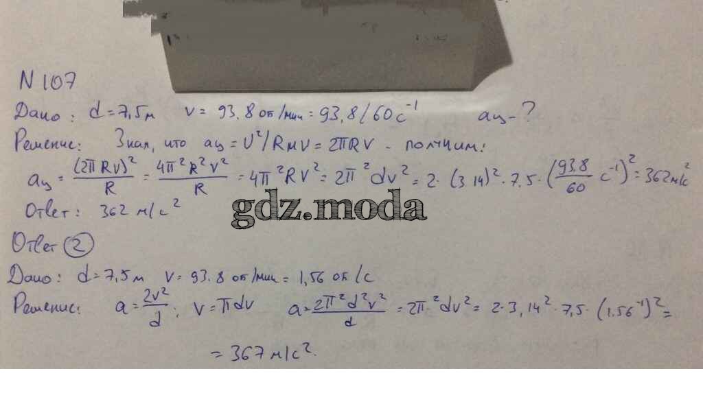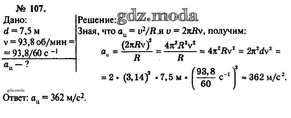 ОТВЕТ на задание № 107 Задачник по Физике 10-11 класс Рымкевич УМК