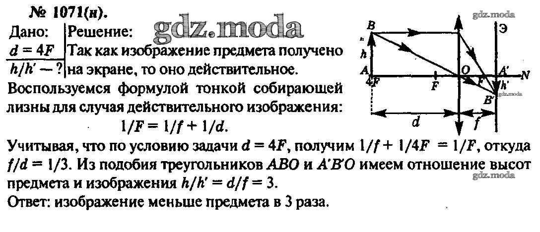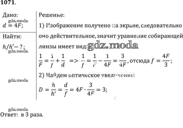 ОТВЕТ на задание № 1071 Задачник по Физике 10-11 класс Рымкевич УМК