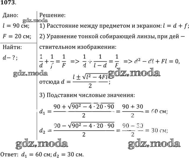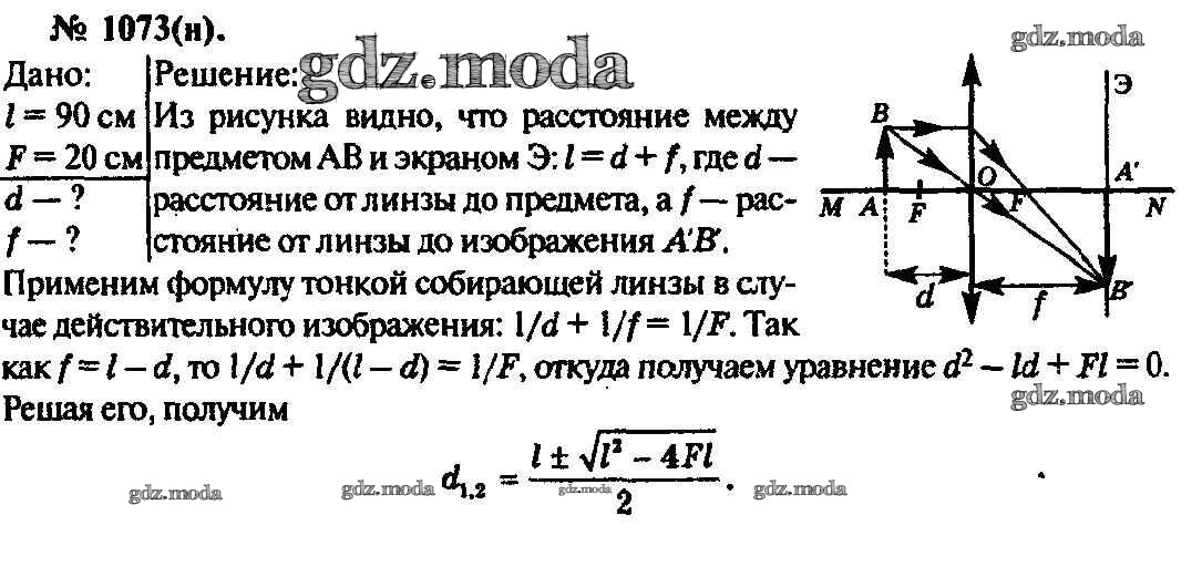 ОТВЕТ на задание № 1073 Задачник по Физике 10-11 класс Рымкевич УМК