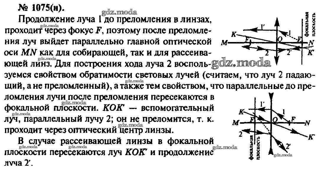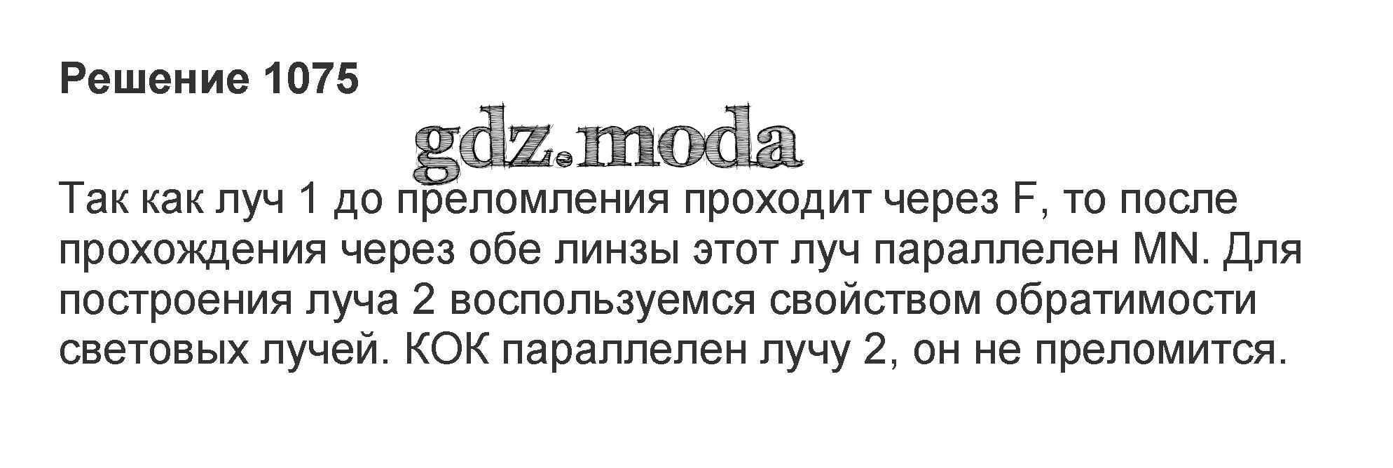 ОТВЕТ на задание № 1075 Задачник по Физике 10-11 класс Рымкевич УМК