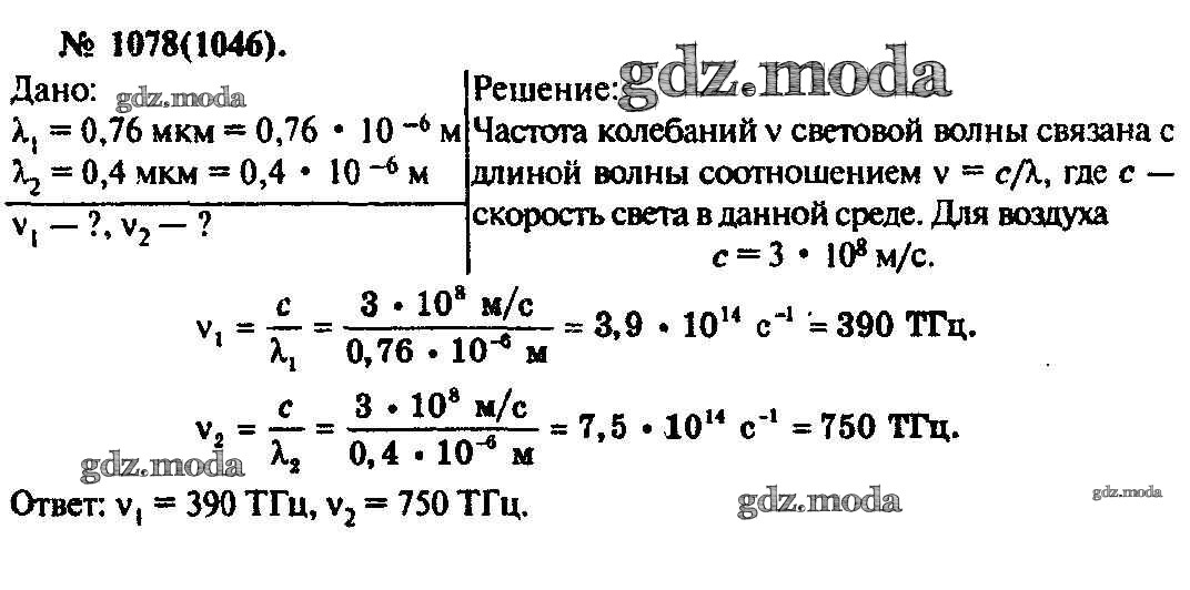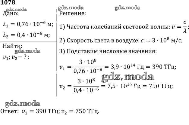 ОТВЕТ на задание № 1078 Задачник по Физике 10-11 класс Рымкевич УМК