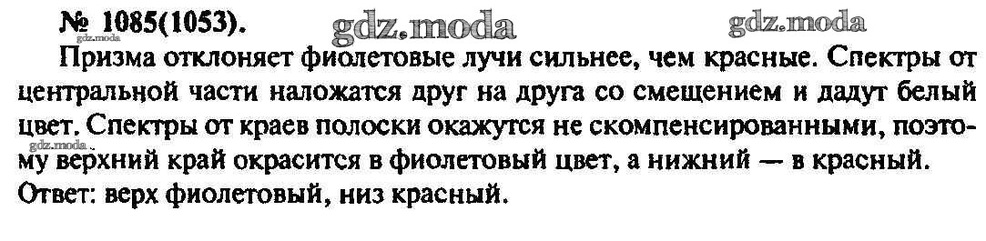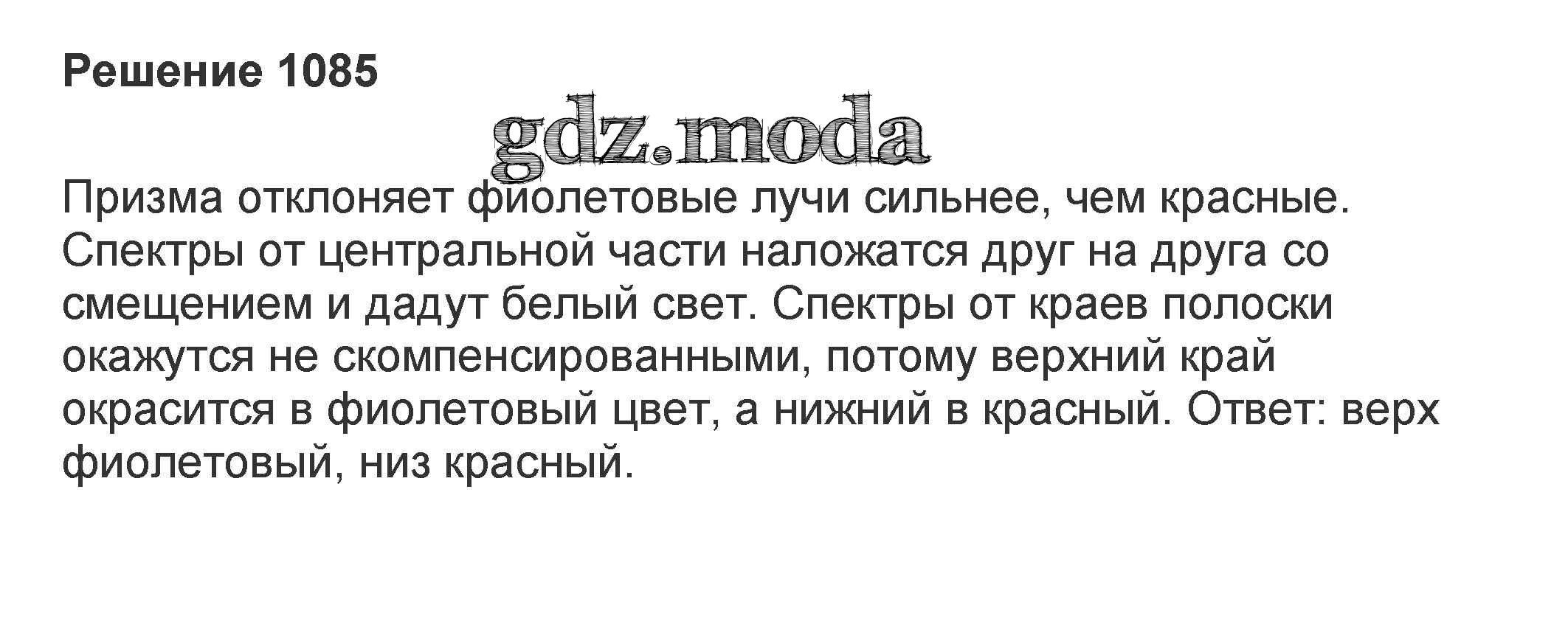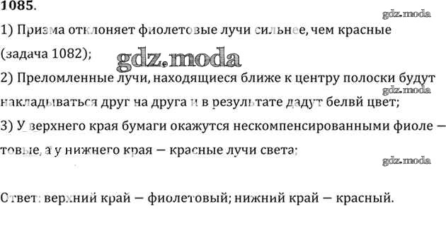 ОТВЕТ на задание № 1085 Задачник по Физике 10-11 класс Рымкевич УМК