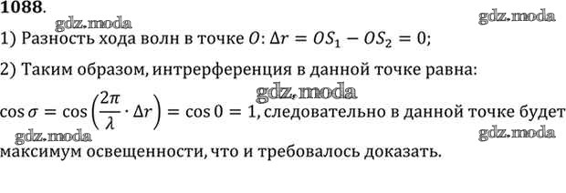 ОТВЕТ на задание № 1088 Задачник по Физике 10-11 класс Рымкевич УМК