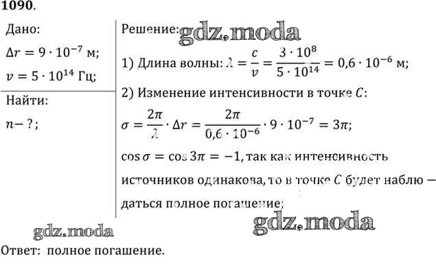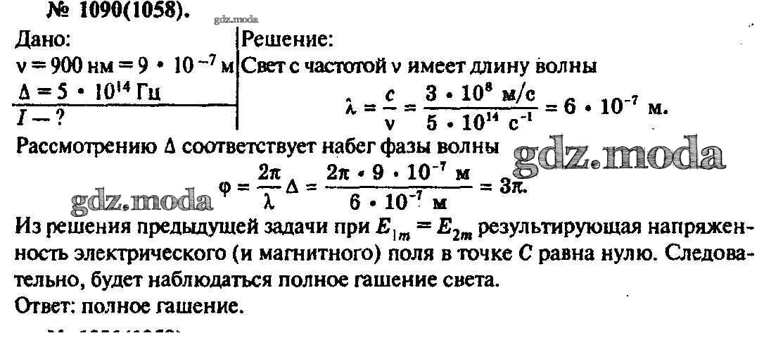 ОТВЕТ на задание № 1090 Задачник по Физике 10-11 класс Рымкевич УМК