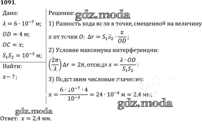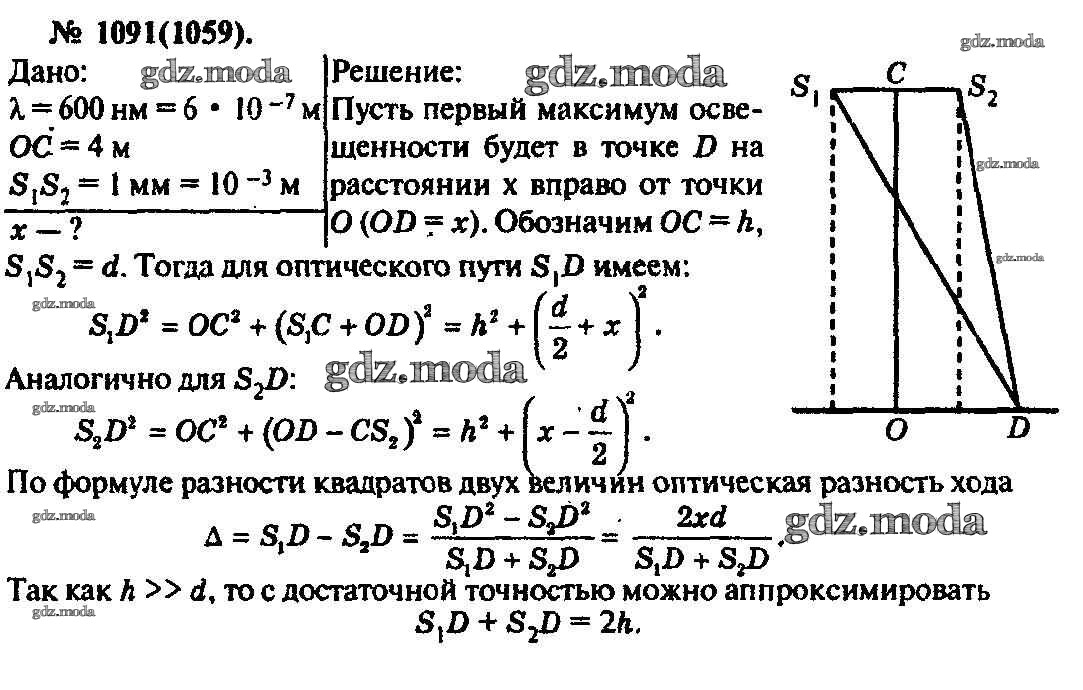 ОТВЕТ на задание № 1091 Задачник по Физике 10-11 класс Рымкевич УМК