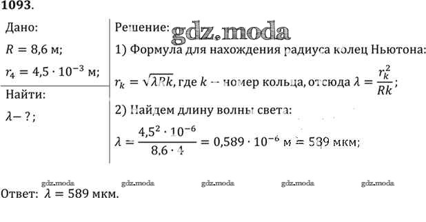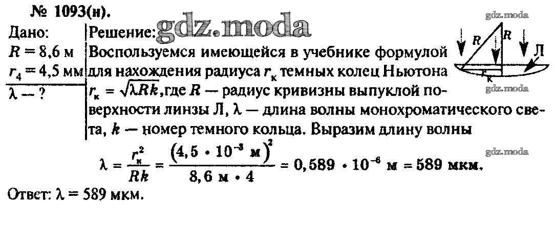 ОТВЕТ на задание № 1093 Задачник по Физике 10-11 класс Рымкевич УМК